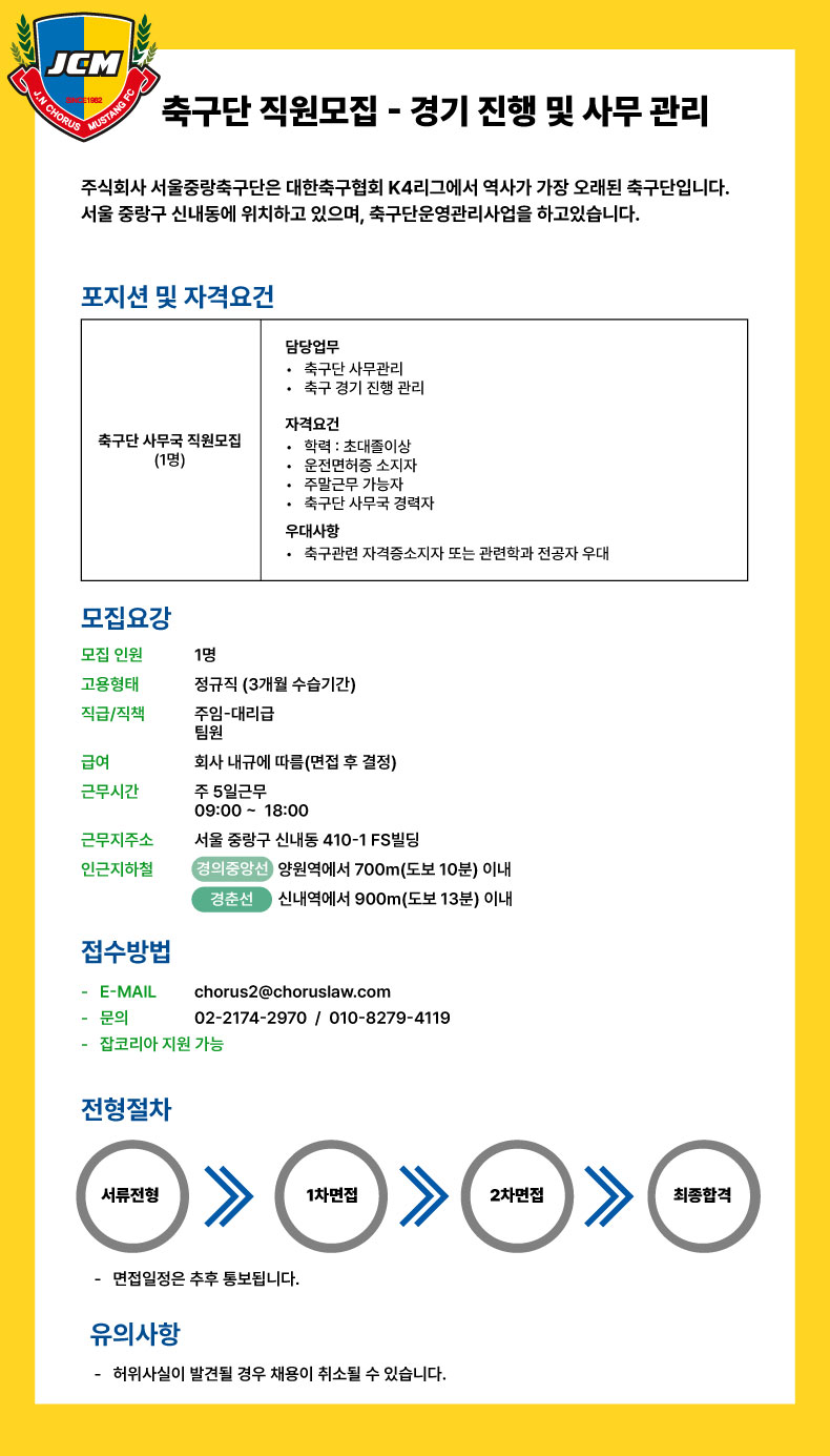 축구단 사무국 직원 모집